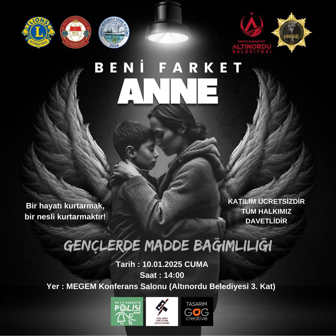 Altınordu Belediyesi, gençleri madde bağımlılığından korumak ve ailelerin bu konuda bilinçlenmesini sağlamak amacıyla önemli bir etkinlik düzenliyor. Ordu Rüsumat Lions Kulübü iş birliğiyle gerçekleştirilecek olan “Beni Fark Et Anne” temalı konferans, ebeveynleri bilinçlendirmeyi ve toplumda farkındalık oluşturmayı hedefliyor.
