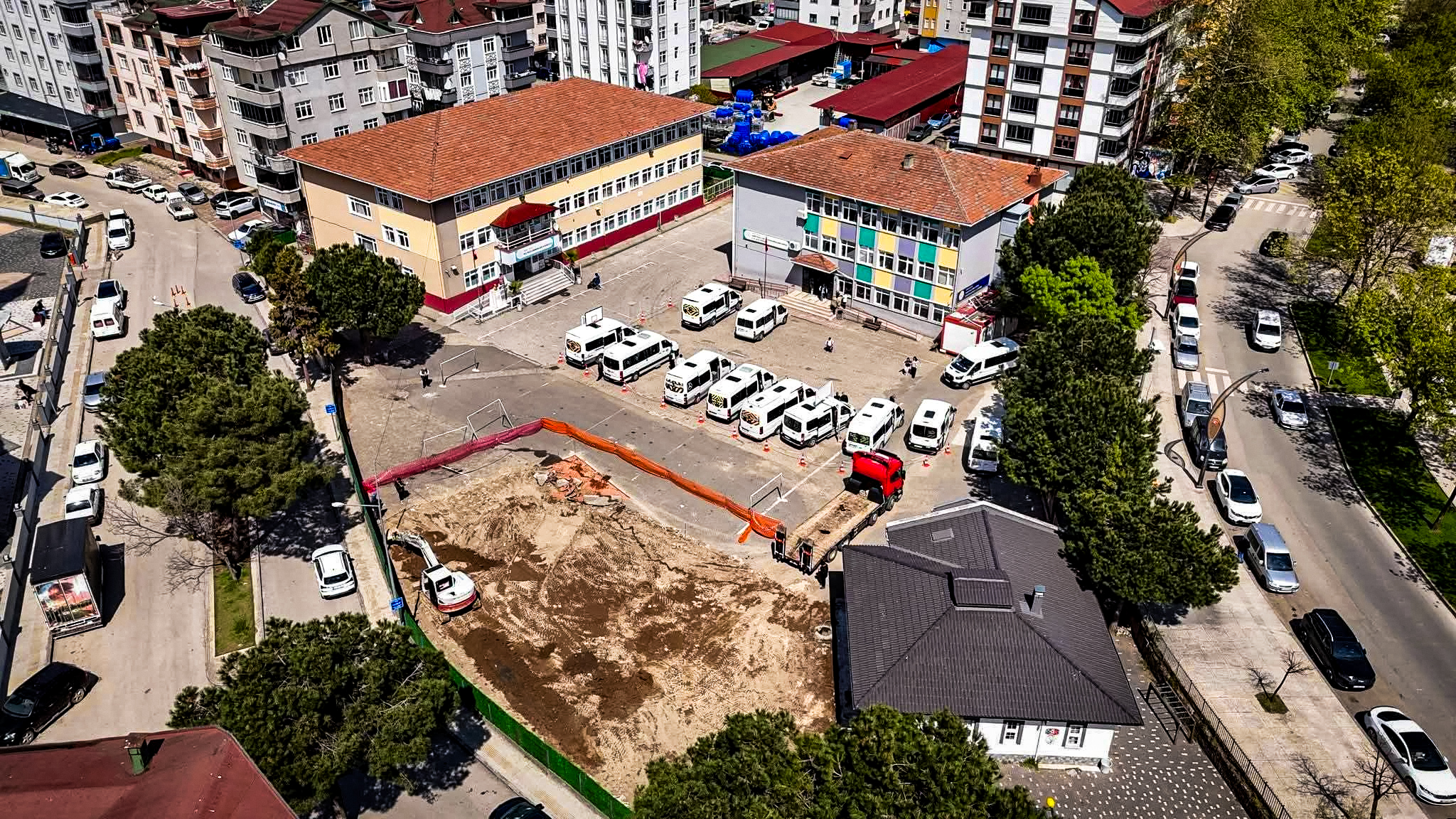 Çocuk Başkan’ın okuluna basketbol ve voleybol sahası yapılması yönündeki isteğinin ardından belediye ekipleri hızlıca harekete geçti ve temeller atıldı.