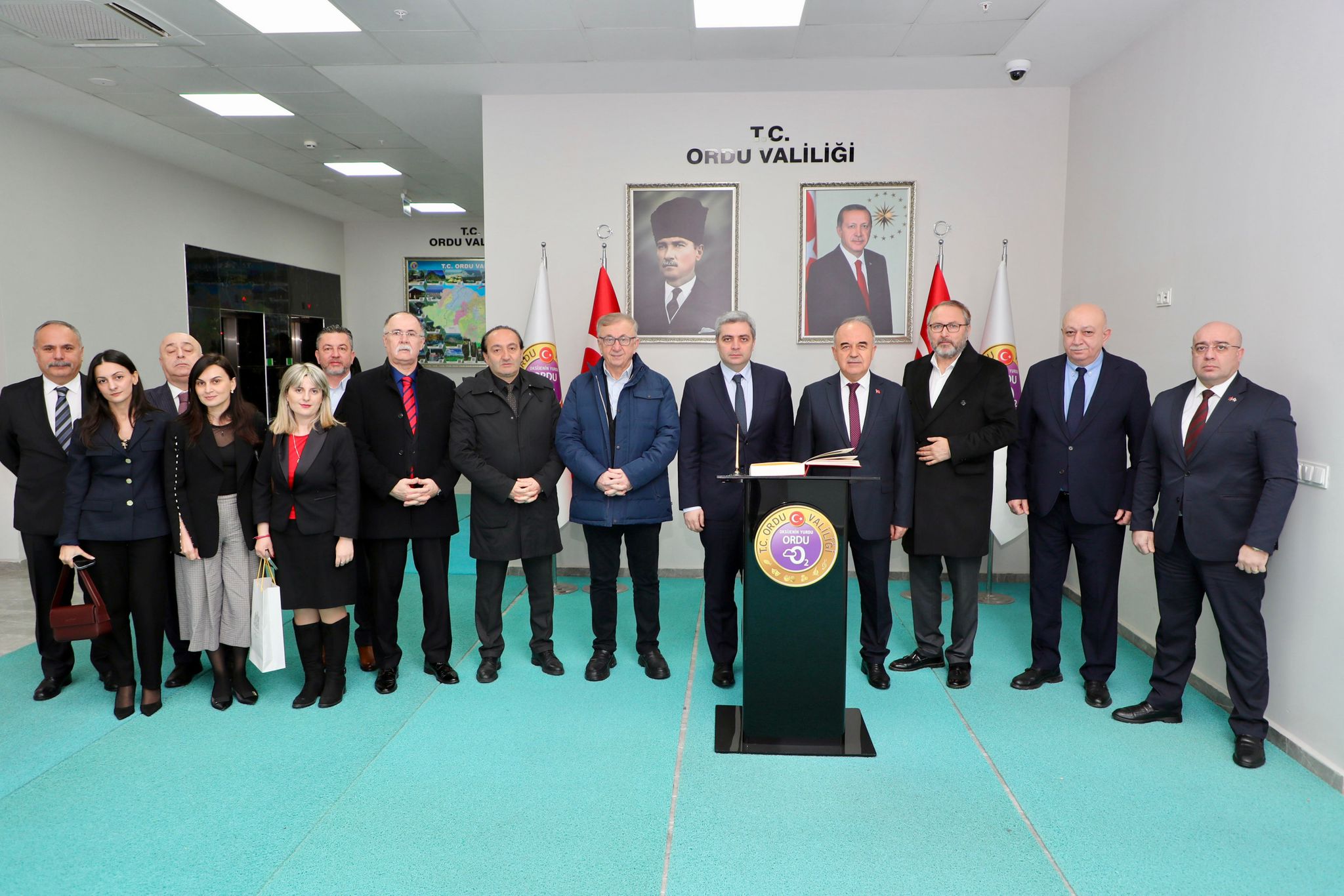 Ordu Valisi Muammer Erol tarafından Ordu Valiliği girişinde karşılanan Büyükelçi Archil Kalandia, Valilik Şeref Defteri’ni imzaladıktan sonra Valilik makamına geçti.