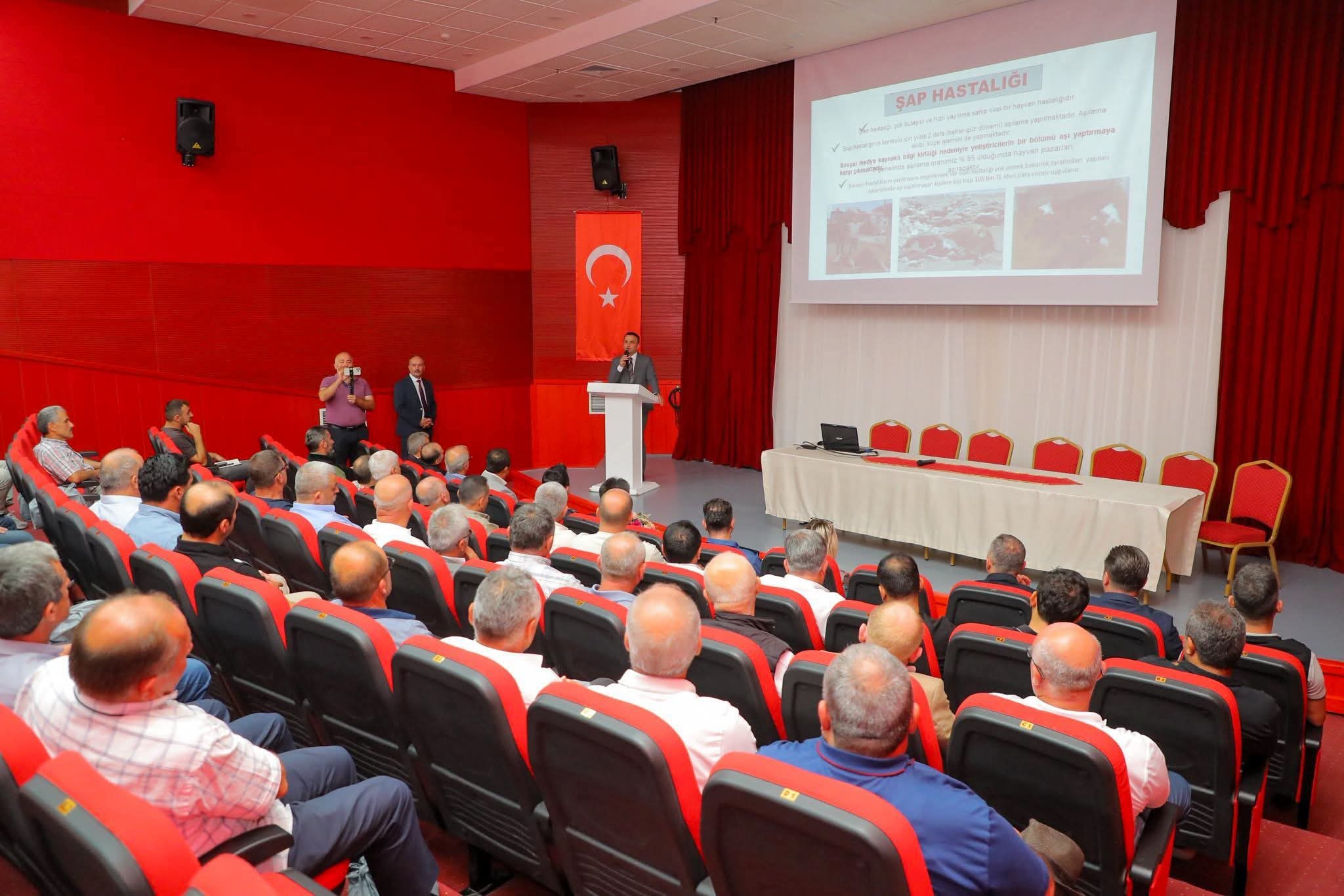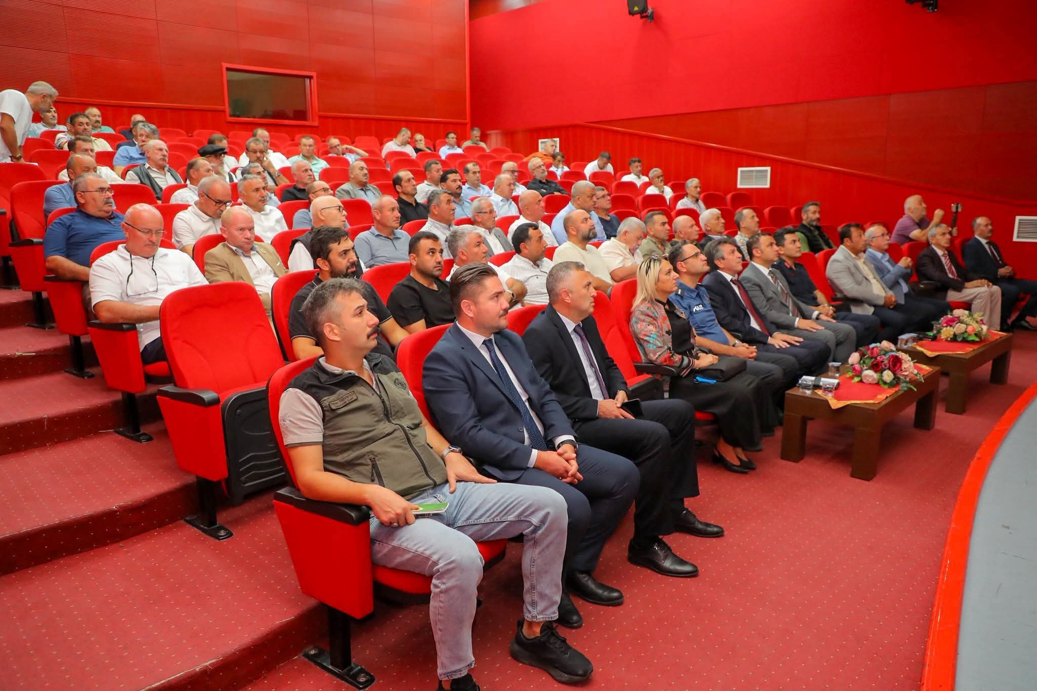 Belediye Kültür ve Sanat Merkezi’nde gerçekleşen toplantıya Belediye Başkanı İbrahim Etem Kibar, Ziraat Odası Başkanı Haydar Gürsu, İlçe Tarım Müdürü Vedat Aydoğan ve muhtarlar katıldı.