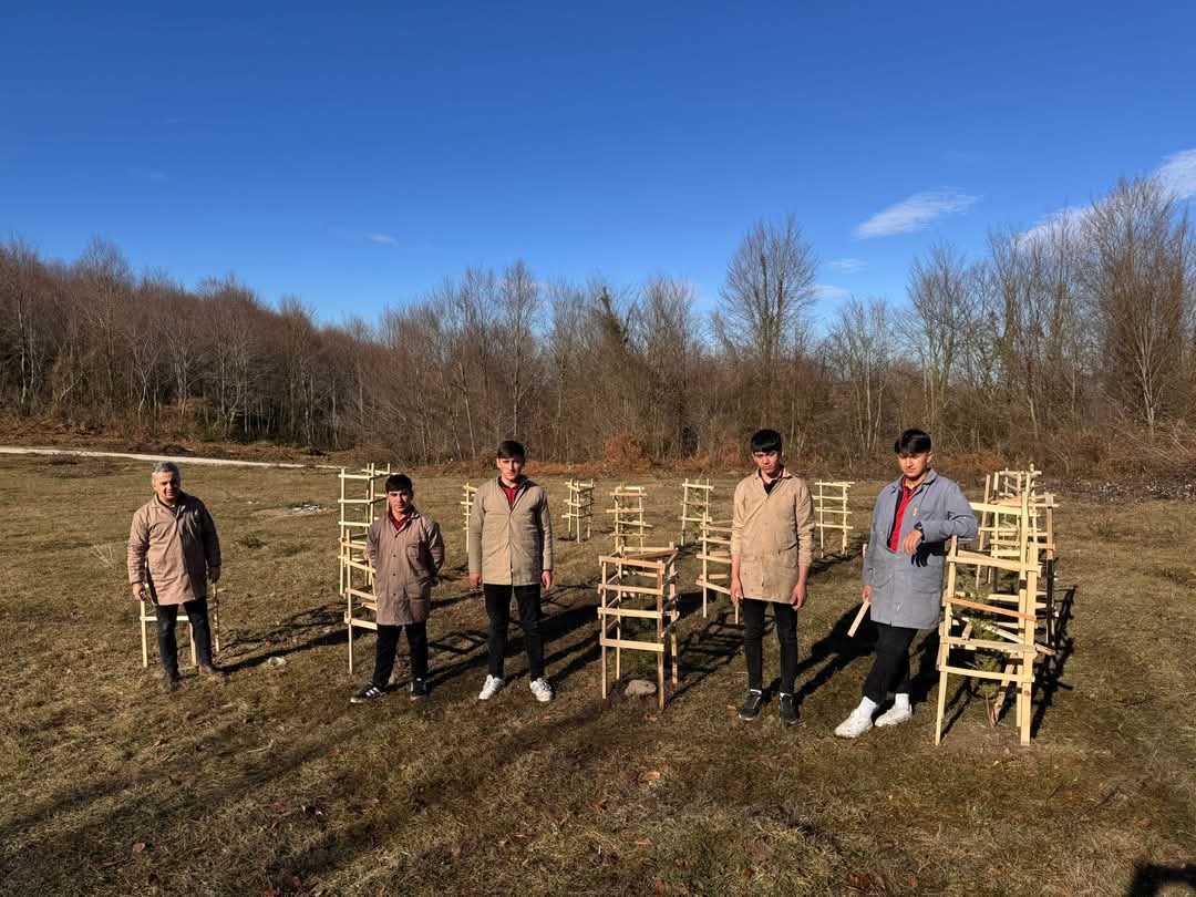 Öğretmenler Günü‘nde gerçekleştirilen fidan dikimi etkinliğinin ardından, Şehit Sabri Eryeler Mesleki ve Teknik Anadolu Lisesi Mobilya Bölümü öğrencileri, fidanlıkları korumalı hale getirdi.