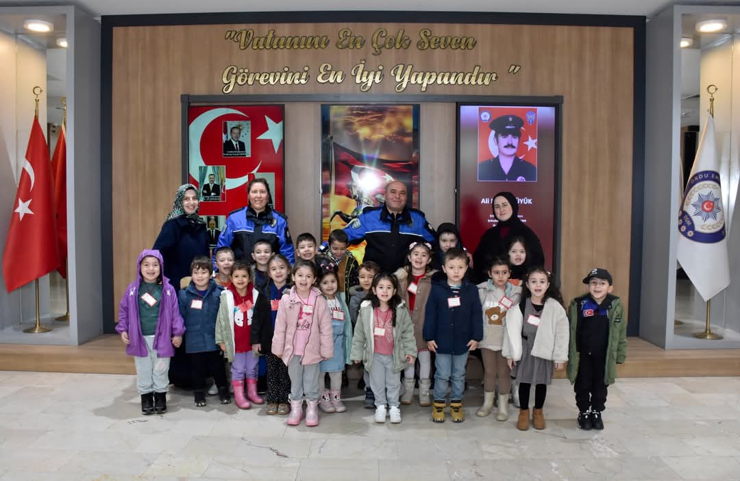 Etkinlik kapsamında minik öğrenciler, polislik mesleği ve genel güvenlik kuralları hakkında bilgilendirildi. Çocuklar, emniyet birimlerini yakından tanıma fırsatı bulurken eğlenceli ve öğretici anlar yaşadı.
