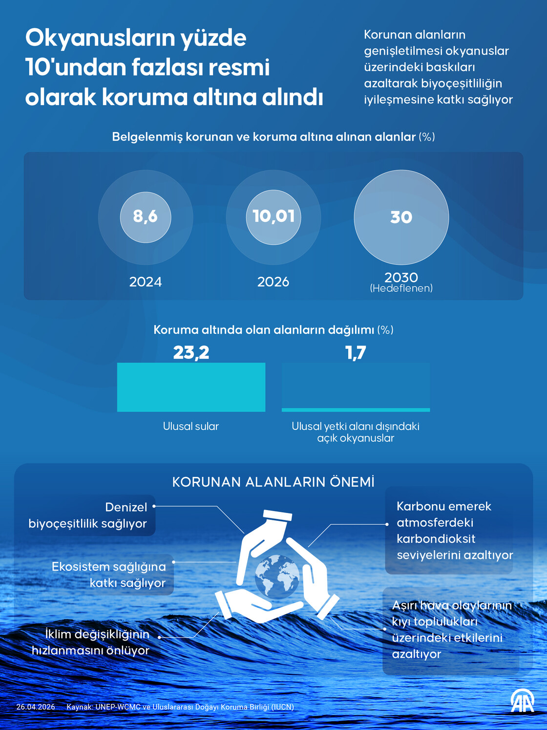 Korunan alanların genişletilmesi okyanuslar üzerindeki baskıları azaltarak biyoçeşitliliğin iyileşmesine katkı sağlıyor.