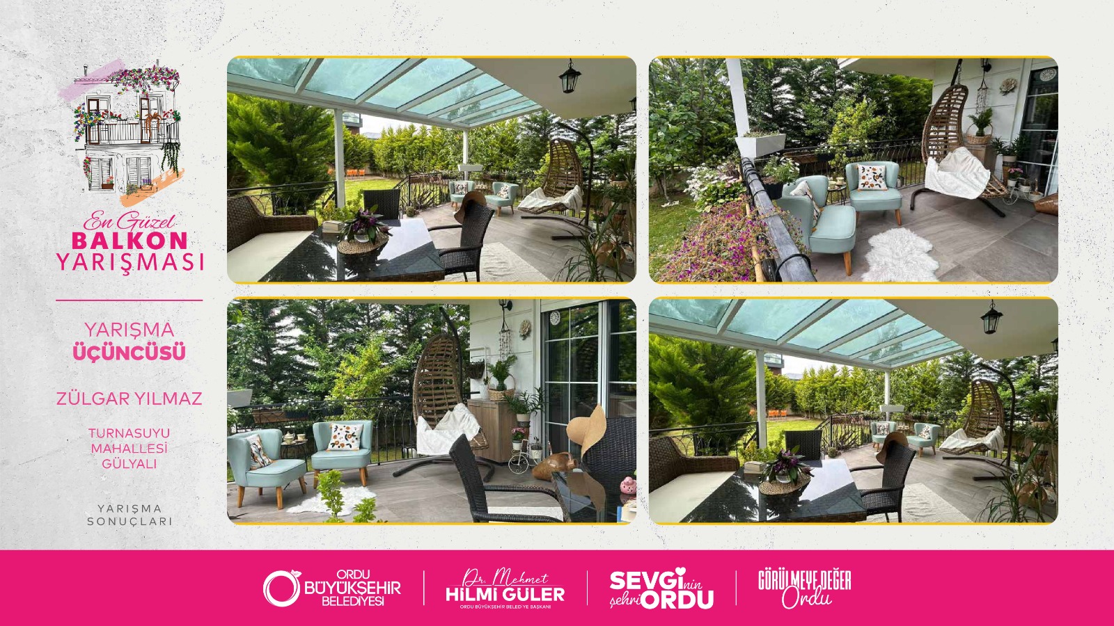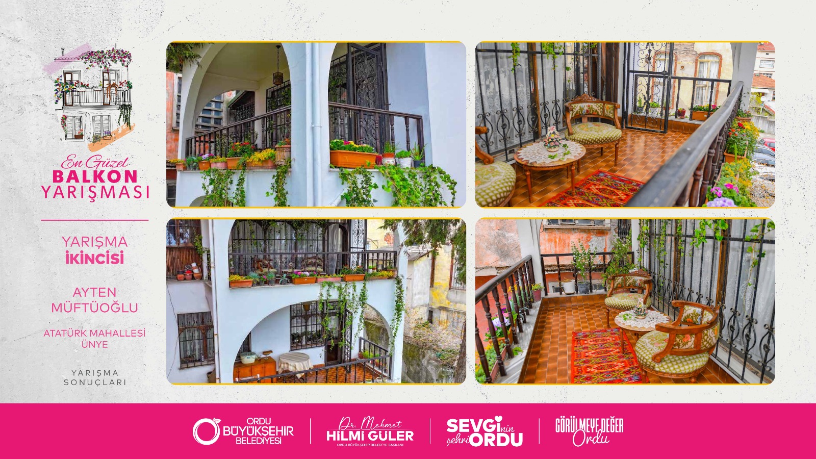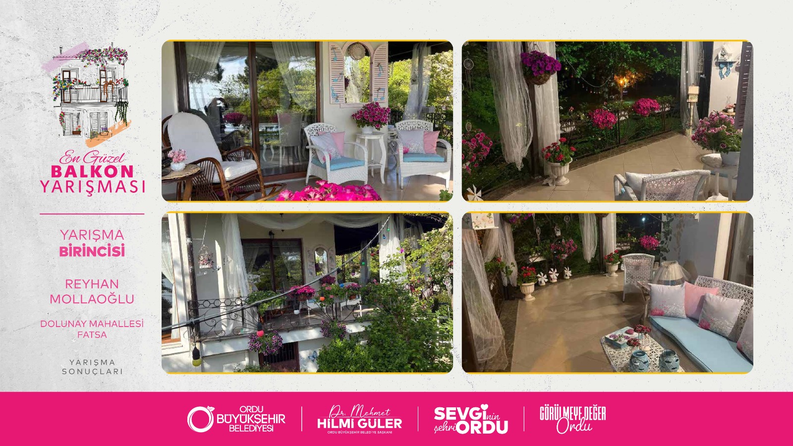 Görülmeye Değer En Güzel Balkon Yarışması da jürinin detaylı çalışması ile belirlendi. En Güzel Balkon yarışmasının birincisi Fatsa Dolunay Mahallesinden Reyhan Mollaoğlu, ikinci Ünye Atatürk Mahallesinden Ayten Müftüoğlu, üçüncü ise Gülyalı ilçesi Turnasuyu Mahallesinden Zülgar Yılmaz’ın balkonu seçildi.