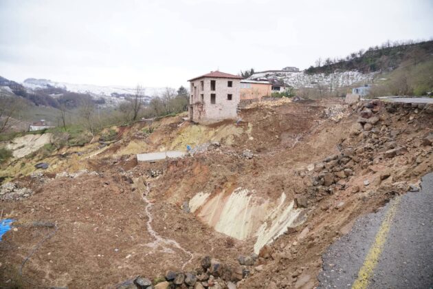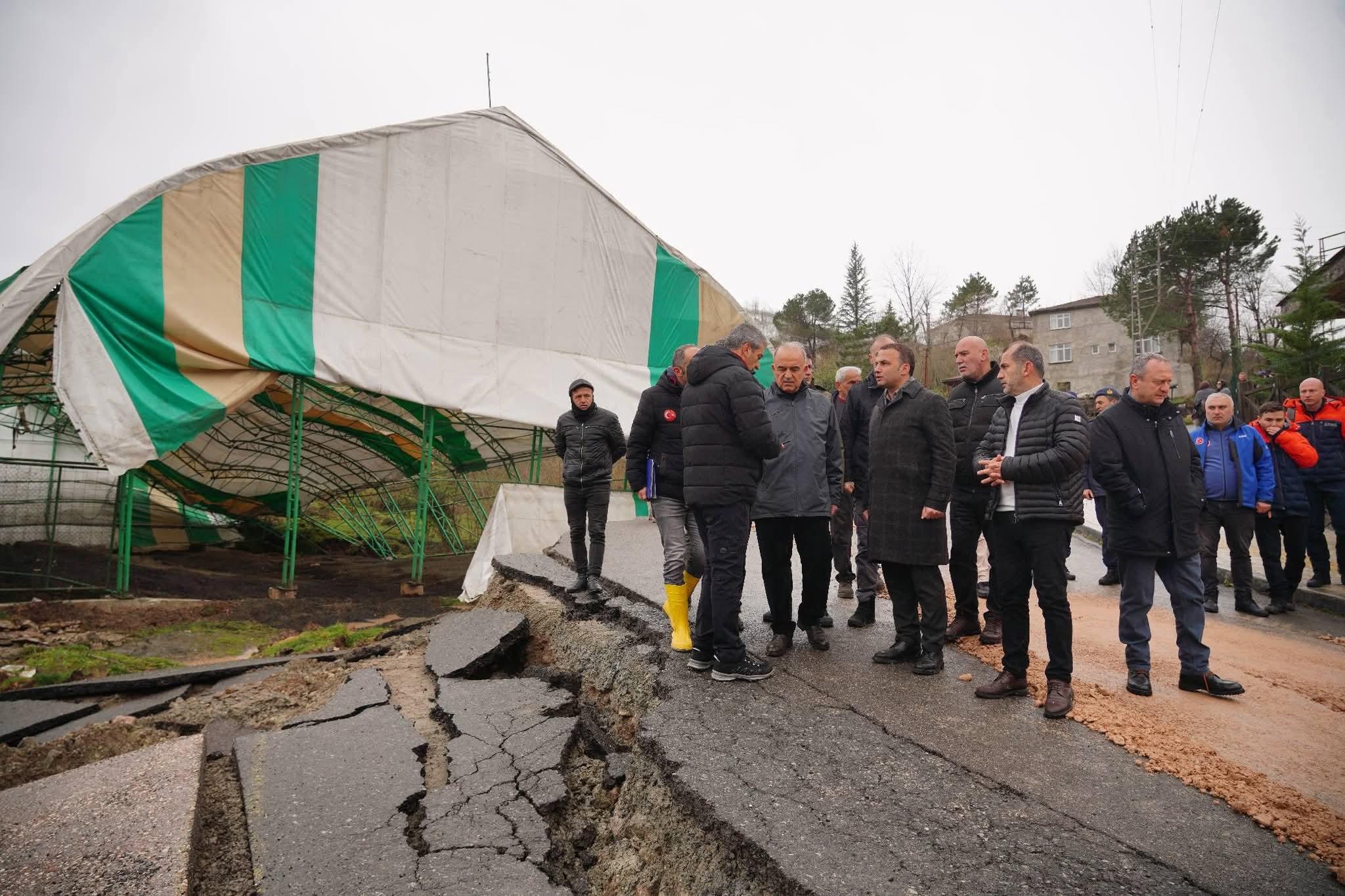 Bölgede bulunan AFAD, jandarma ve belediye ekipleri heyelanın meydana geldiği alanda inceleme başlattı. Heyelanın büyüme riskine karşı çevrede güvenlik çemberi oluşturulurken, ulaşımın sağlandığı yolun tamamen çöktüğü belirlendi.