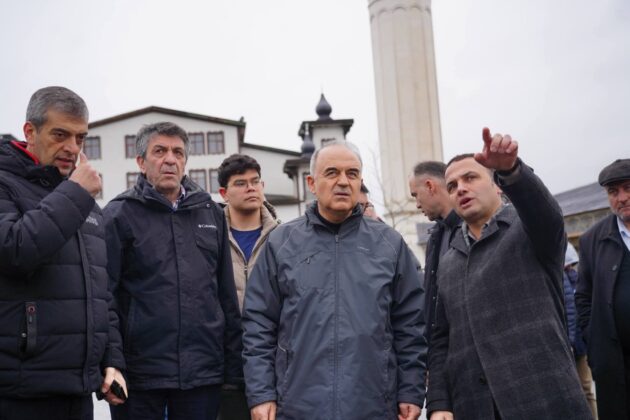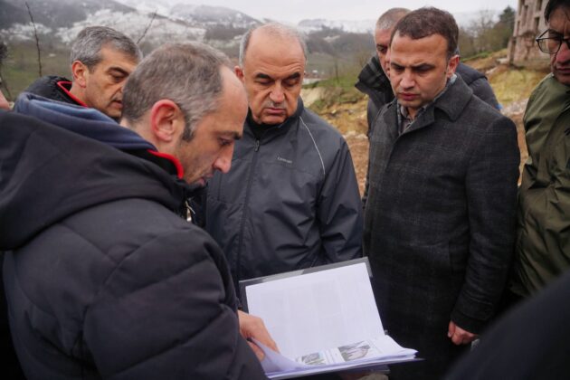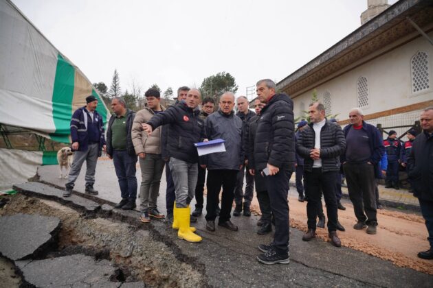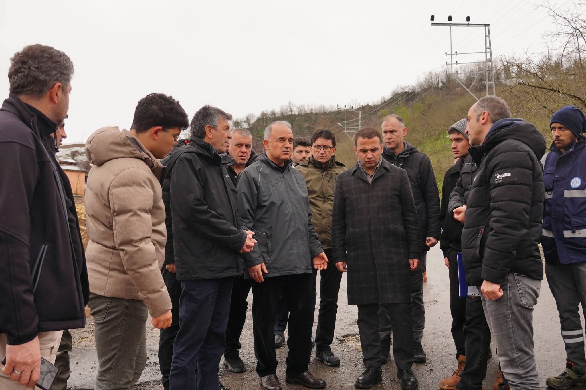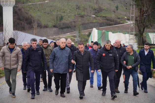 Daha önceden de heyelanların yaşandığı ve 4 evde tahliye kararı bulunan noktada Muammer Erol, beraberindeki heyet ile birlikte heyelan noktasına giderek incelemelerde bulundu ve yetkililerden bilgi aldı.