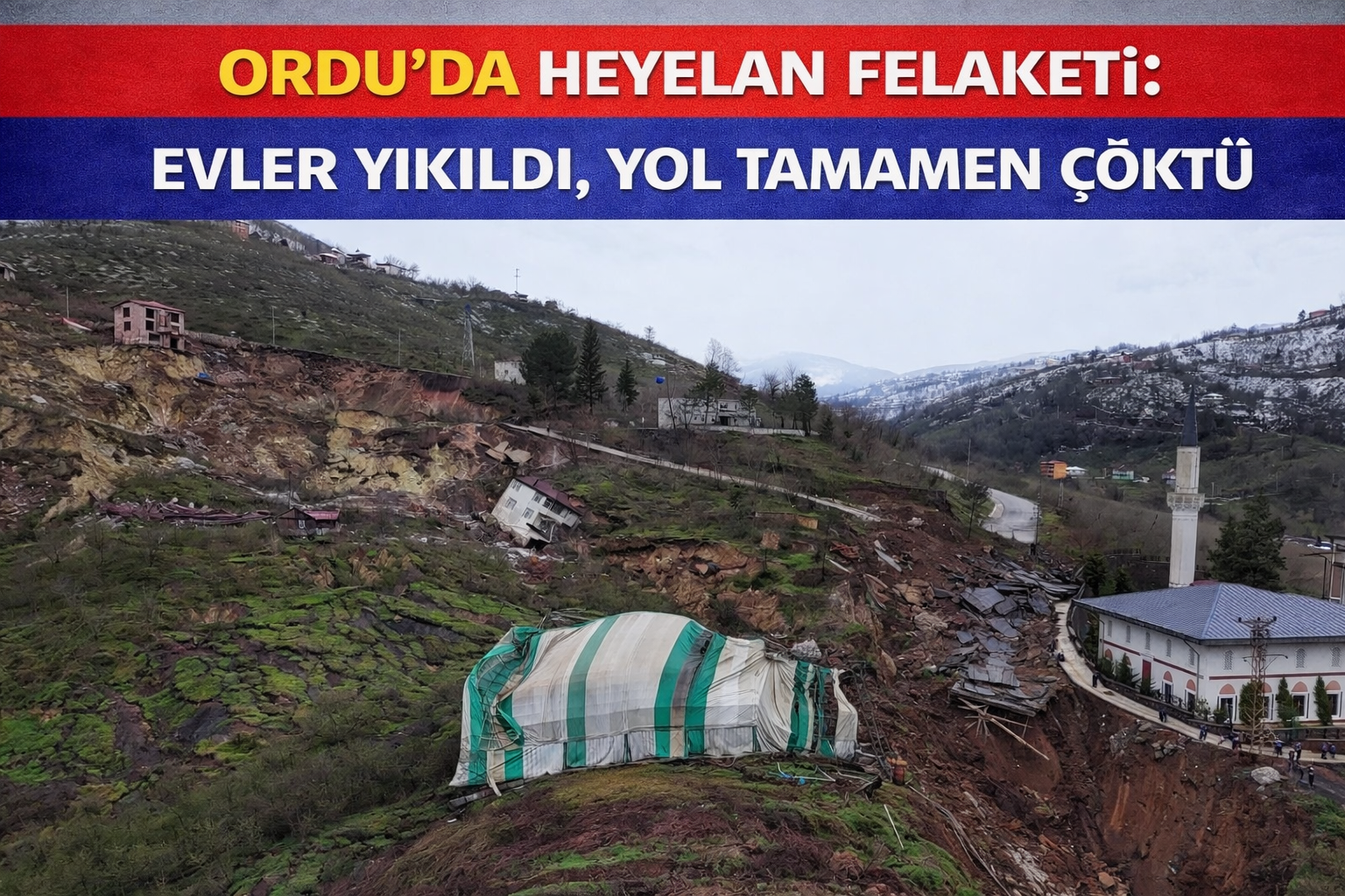 Bölgede 3 gündür etkili olan sağanak yağışın ardından sabaha karşı oluşan heyelanda mahalleye ulaşımı sağlayan yol tamamen çöktü ve bölgeye giriş-çıkış kapandı. Heyelanın etkisiyle 2 ev ve 1 halı saha yıkılırken, 1 ev yan yattı. Ayrıca bazı evlerin duvarlarında derin çatlaklar oluştu.