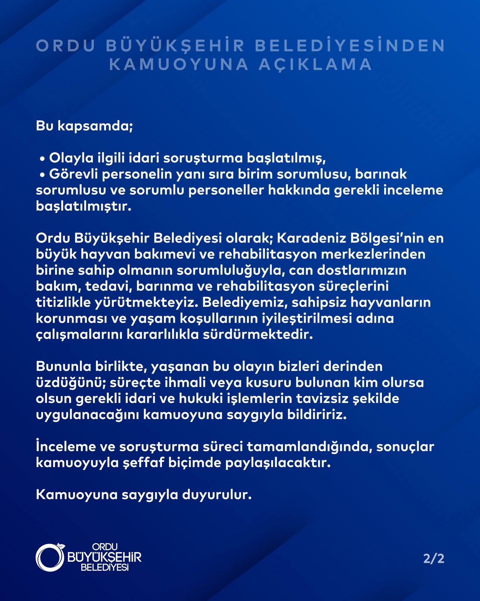 Ordu Büyükşehir Belediyesi’ne ait hayvan barınağından paylaşılan görüntüler, kamuoyunda büyük infiale yol açtı. Görüntülerde köpeklerin açlıktan öldüğü, ölü hayvanların ise barınakta bulunan diğer hayvanlar tarafından yenildiği iddia edildi.