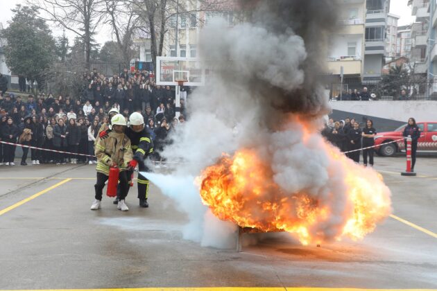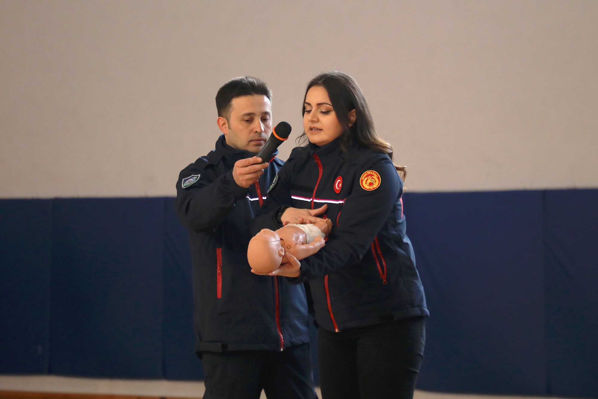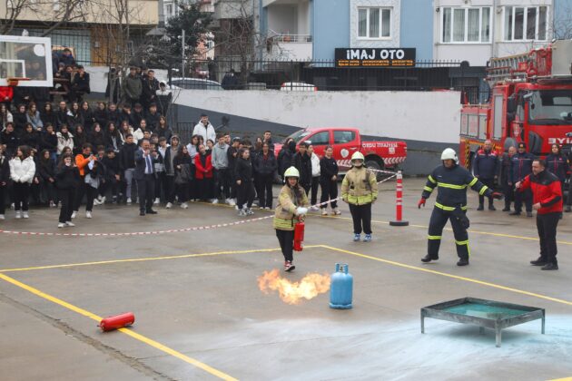 Yangını önleme ve söndürme teknikleri konularında öğrencilere yangın söndürme malzemelerinin kullanımı ve yangın yerinde doğru hareket tarzları gösterilirken, İlk yardım eğitimiyle de öğrenciler genel ilk yardım konularında bilinçlendirildi.