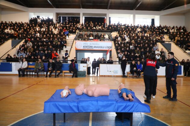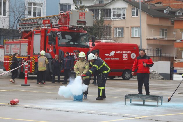 Ordu Büyükşehir Belediyesi İtfaiye Dairesi Başkanlığı tarafından Altınordu Atatürk Anadolu Lisesi’nde deprem ve yangın tatbikatı ile ilk yardım ve yangın konularında eğitim çalışmaları yapıldı.