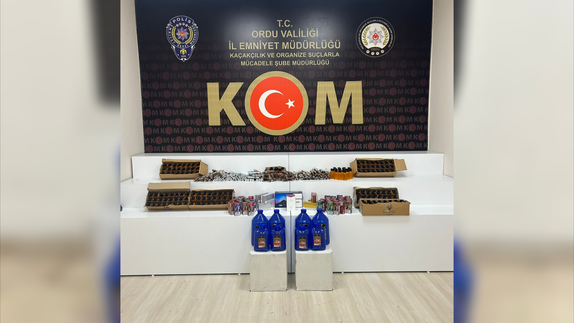 Ordu İl Emniyet Müdürlüğü Kaçakçılık ve Organize Suçlarla Mücadele (KOM) Şube Müdürlüğü ekipleri, kaçak alkol ve tütün ürünlerine yönelik geniş çaplı operasyon düzenledi.