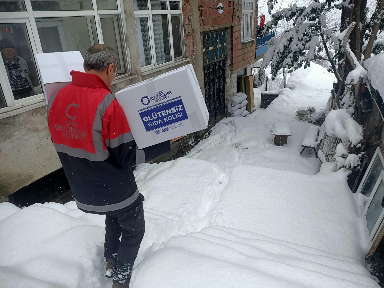 Kent genelinde etkili olan yoğun kar yağışına rağmen ekipler sıcak yemekleri her gün ilçelerde bulunan yaşlı ve ihtiyaç sahibi vatandaşlara ulaştırıyor.