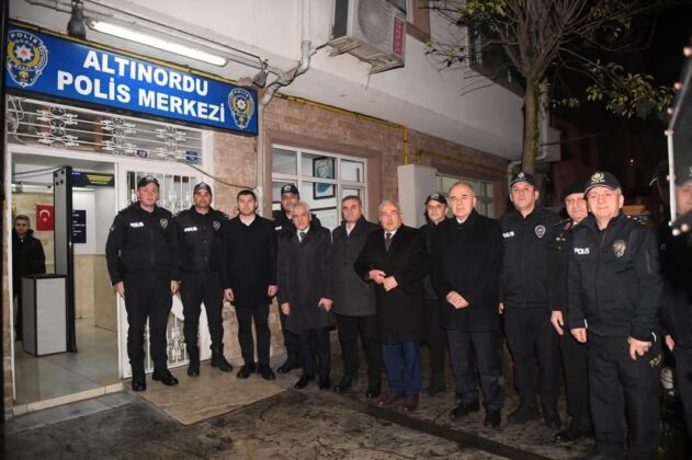 Şehrin giriş noktalarında bulunan güvenlik kontrol noktaları ile Altınordu İlçe Emniyet Müdürlüğü ve İlçe Jandarma Komutanlığı hizmet binalarında görev yapan polis ve jandarma ekiplerini, itfaiye teşkilatı mensuplarını, 112 Acil Çağrı Merkezi personelini ve hastanelerde görev yapan sağlık çalışanları ile hastaları ziyaret eden Vali Muammer Erol ve beraberindekiler, görev başındaki kamu görevlilerinin yeni yılını kutladı.