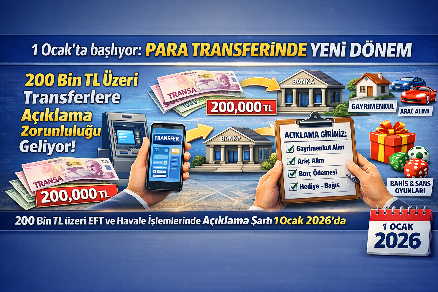 Mali Suçları Araştırma Kurulu (MASAK), yasa dışı bahisle mücadele kapsamında 200 bin TL üzerindeki tüm banka transferlerinde açıklama zorunluluğu getiriyor. Uygulama; ATM, mobil ve internet bankacılığı işlemlerini kapsayacak ve 1 Ocak 2026’dan itibaren yürürlüğe girecek.