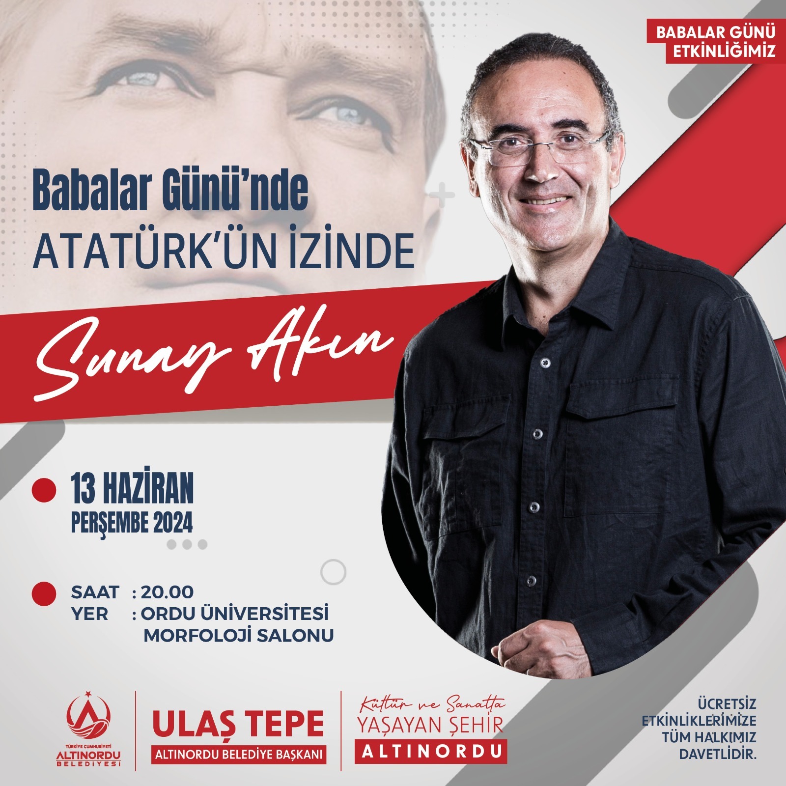 Altınordu Belediyesi, Babalar Günü’ne özel olarak düzenlediği etkinlikte, Türk edebiyatının usta ismi şair ve yazar Sunay Akın’ı, yarın Ordulularla buluşturacak.