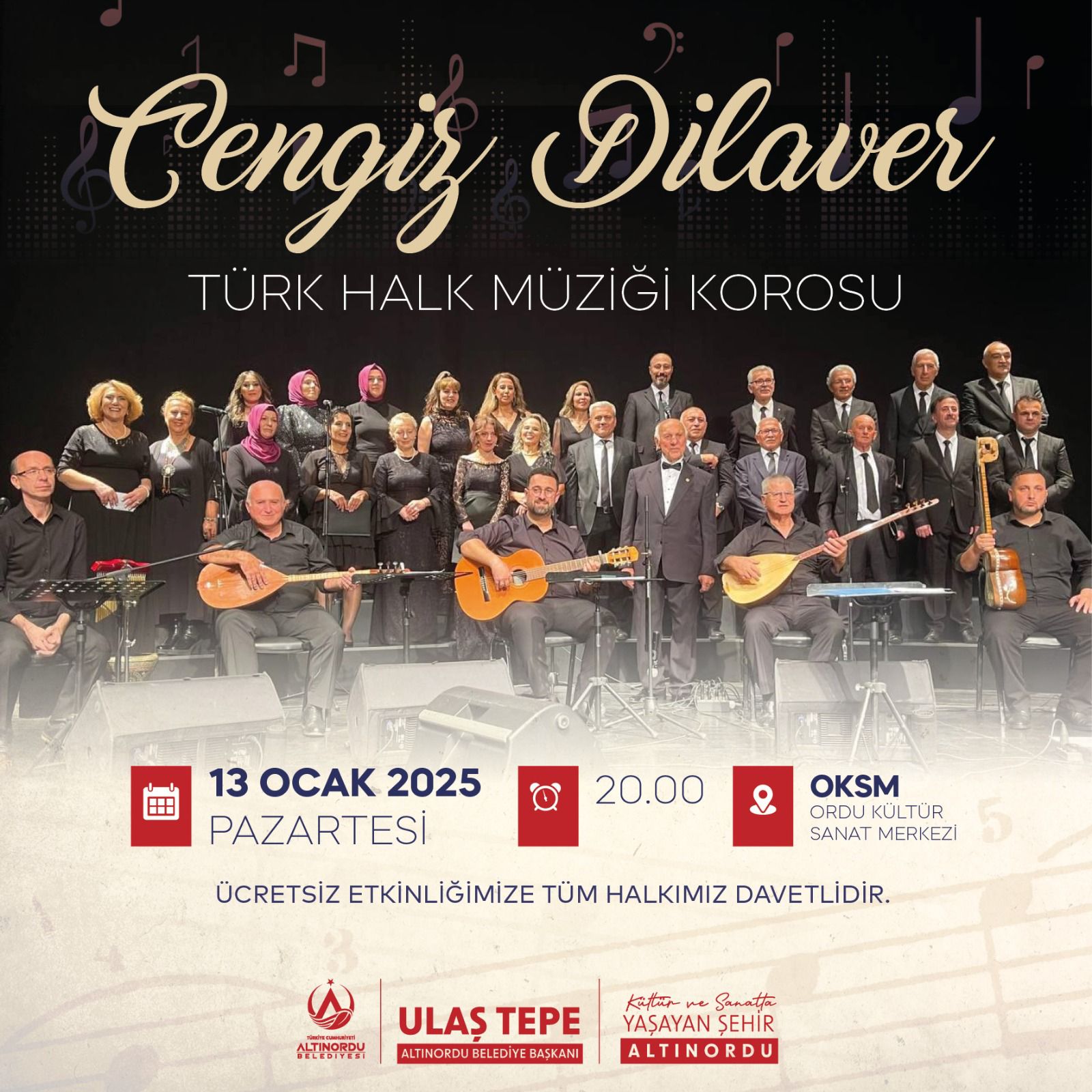 Altınordu Belediyesi’nin desteğiyle düzenlenen konser, 13 Ocak Pazartesi günü saat 20.00’de, Ordu Kültür Sanat Merkezi’nde (OKSM) gerçekleştirilecek. Etkinlik ücretsiz olarak düzenleniyor ve tüm müzikseverler davet ediliyor.