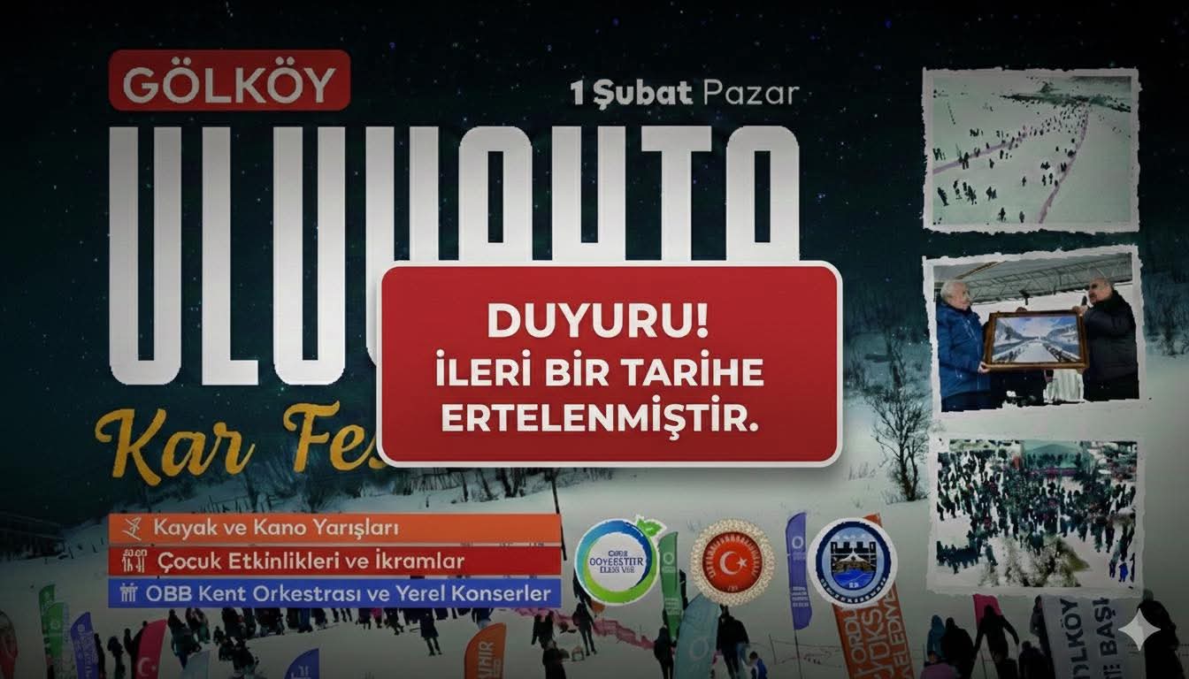 Gölköy Belediyesi tarafından 1 Şubat Pazar günü, Uluvahta Yaylası’nda düzenlenmesi planlanan Uluvahta Yaylası Kar Festivali, bölgede etkili olan hava şartları sebebiyle yapılamayacak.