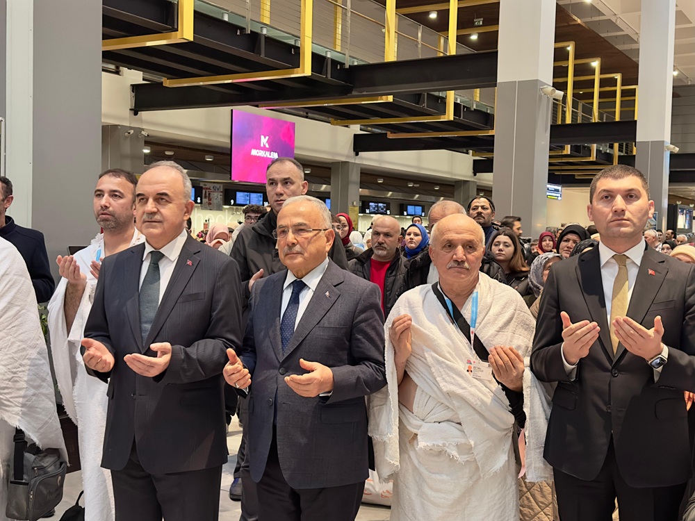 - Vali Muammer Erol, kafileye hitaben yaptığı konuşmada, “Sağlık ve sıhhatle gidip gelmeniz nasip olsun. Dualarınız bizler için de makbul olsun. İsteyen herkese en kısa zamanda bu mukaddes yolculuk nasip olur inşallah,” dedi.