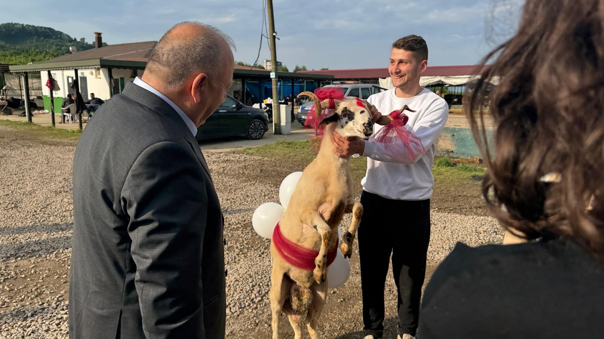 Ziyaretin en dikkat çekici anlarından biri, yakında dünya evine girecek bir gencin nişanlısına aldığı kurban oldu.