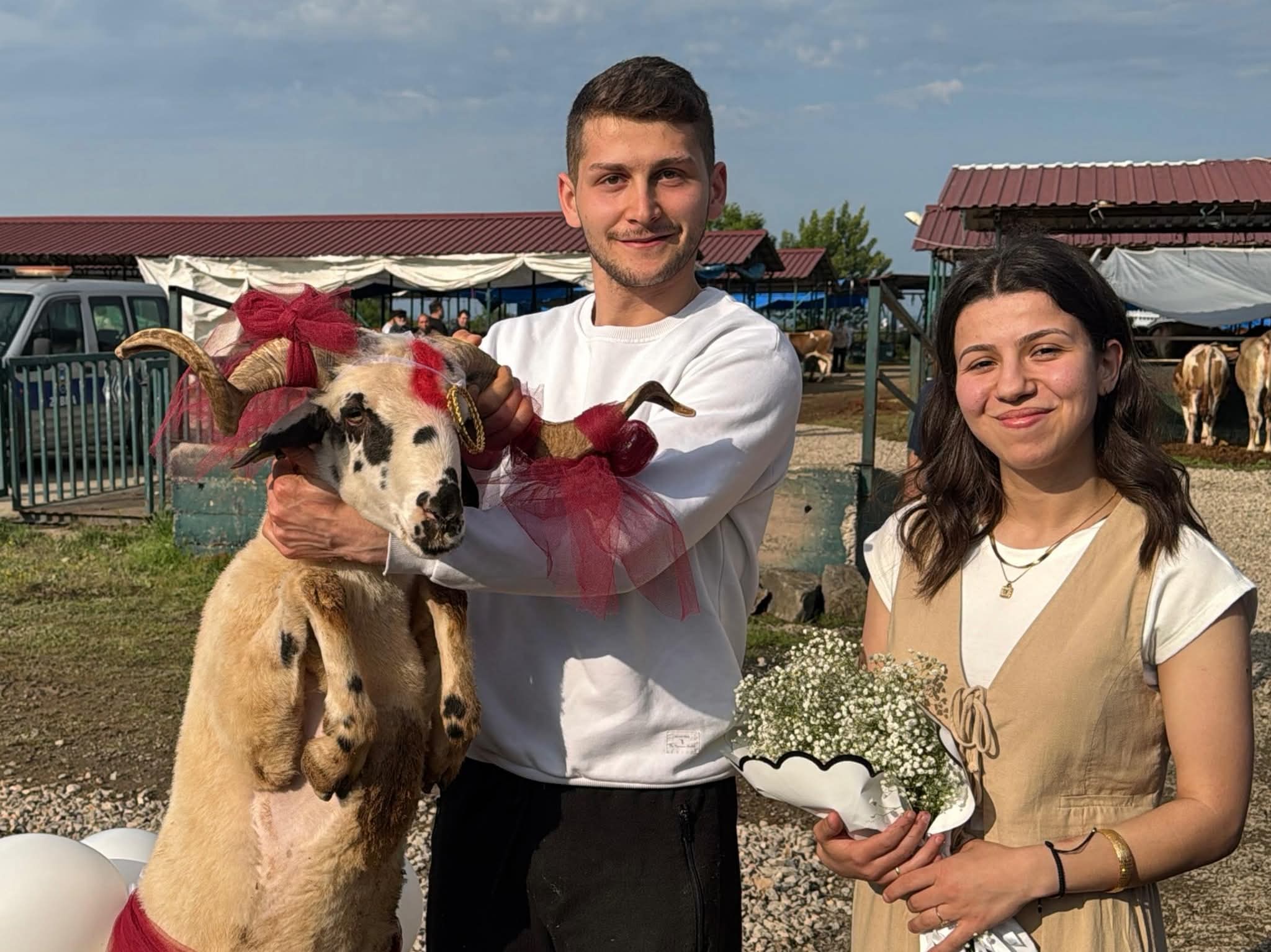 Pazarın en dikkat çekici anlarından biri ise, evlilik hazırlığındaki bir gencin nişanlısına kurbanlık hediye etmesi oldu.